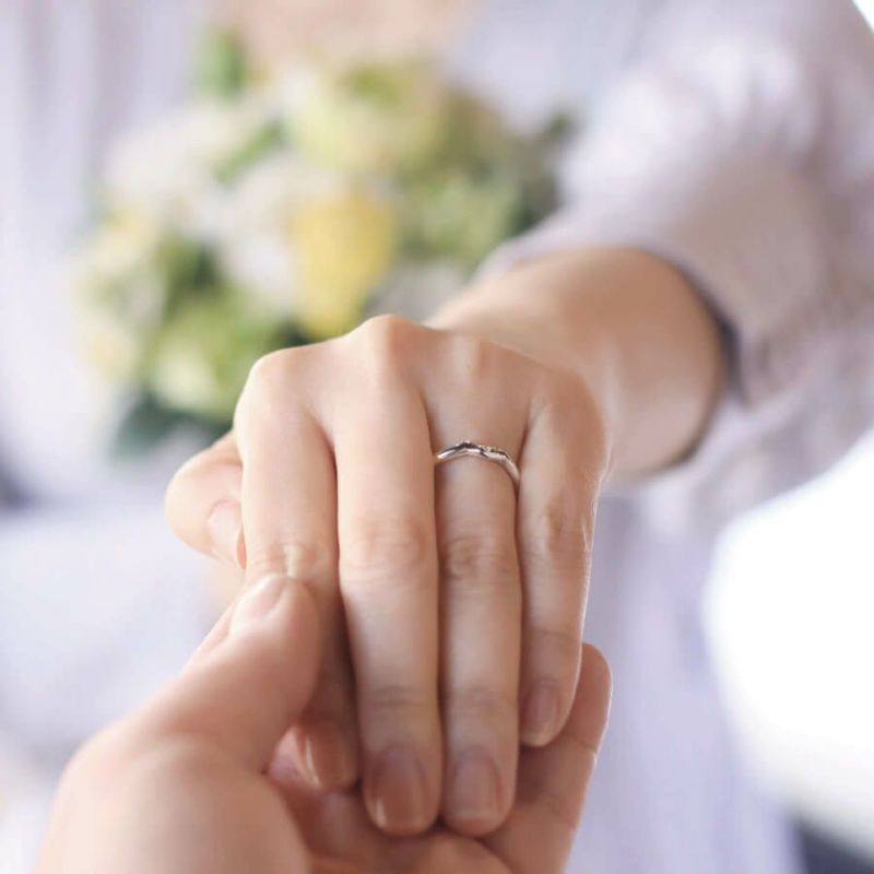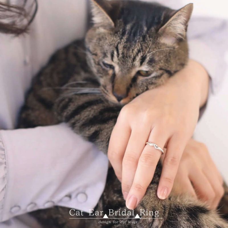 手元に愛猫がいるかのような温かみのあるねこ耳をモチーフにしたデザインはCattonオリジナルです。 指先を華奢に見せる効果をもつウェーブラインがよく見ると『ねこっ!』 ねこが大好きなお二人にとって特別感のあるブライダルリングにしました。 女性用のデザインにはダイヤモンドを2石留めます。滑らかなエッジに仕上げたので指あたりも良く、日常に馴染みます。 猫が大好きなお二人は、いつも猫も一緒にいることができる、家族のしるしです。 地金カラーの変更対応できます。(イエローゴールド/ピンクゴールドに変更可能)