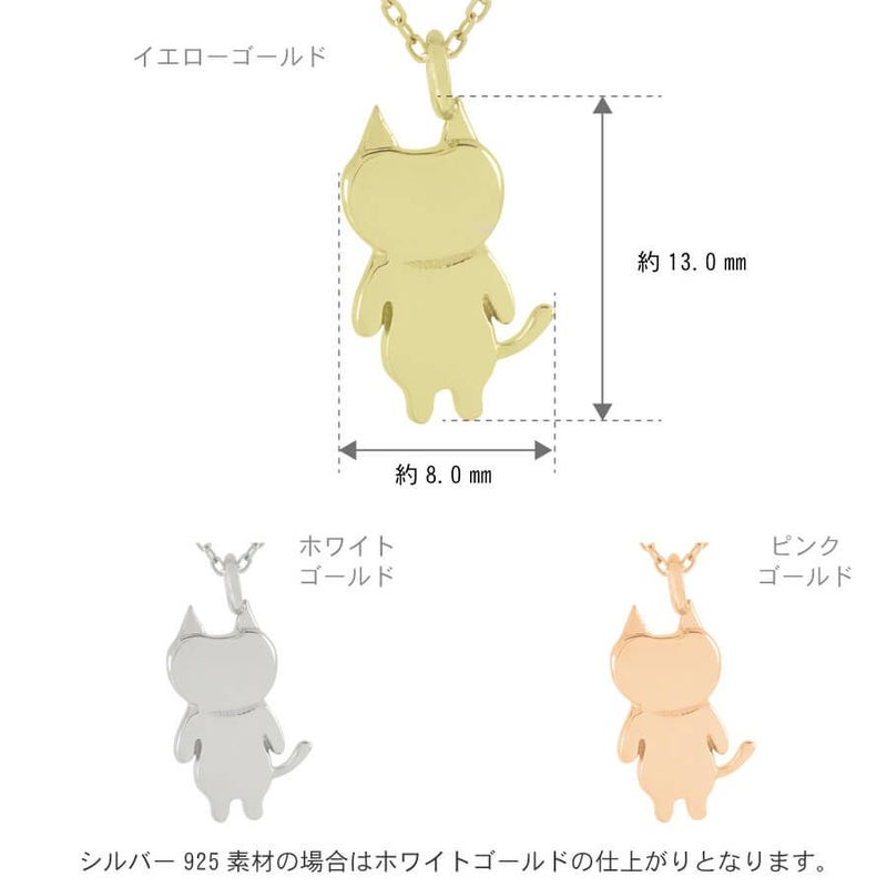 魔法使いのキャラクターのようなネコ なんともかわいい猫が貴女のもとに幸せを運びます。 ゴールド本来の輝きで気分も上がります。 キレイめファッションから日常使いまで、お洋服を選ばずこれひとつでキマります。 シルバー925素材はロジウム仕上げ。 K18/K10素材はイエローゴールド・ピンクゴールド・ホワイトゴールドの3種類の地金からお選び頂けます。