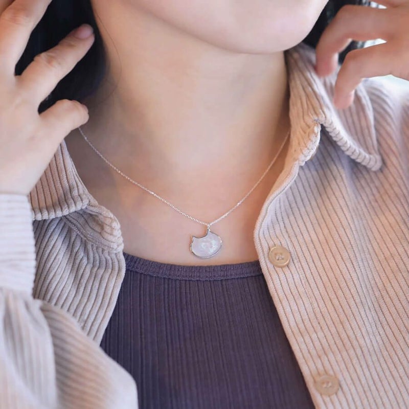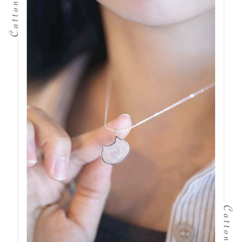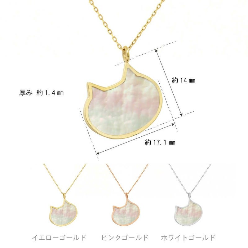猫の首傾げのように、ちょっと斜めにした猫の顔が主張するジュエリー。 大き目のペンダントには、シェルを使用しています。 独特な貝の輝きと、ゴールドの組み合わせはオトナの女性にも似合います。 チェーンをオプションで長くしてロングネックレスとして使用するのもオススメです。 ▼K18/K10ゴールドはこちらから▼