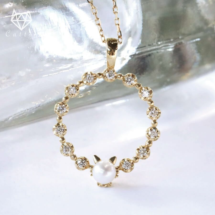 ネッコレスが揺れるティアードロップ ネックレス ダイヤモンド