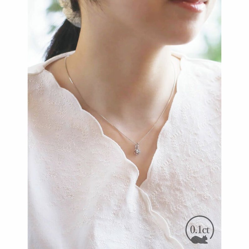 4. ネッコレスが揺れるティアードロップ ネックレス ダイヤモンド