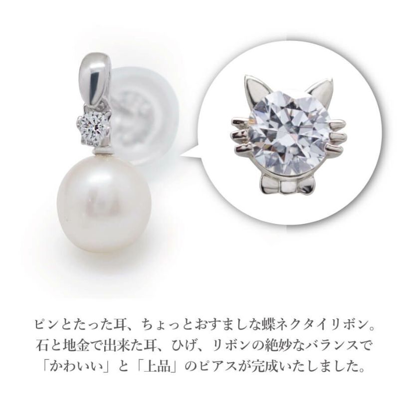 小さなミニネッコレスが揺れるジュエリー!! さりげなく揺れるのにキラキラ輝く一粒の猫に胸きゅん♪思わず目で追ってしまうかわいらしさ。 可愛さは控えめで、一粒のパールジュエリーはどんなファッションにも合わせやすい万能ジュエリーです。 K18ゴールドはイエローゴールド、ピンクゴールド、ホワイトゴールドよりお選びいただけます。シルバー925素材はカラーがホワイトゴールドのみとなります。