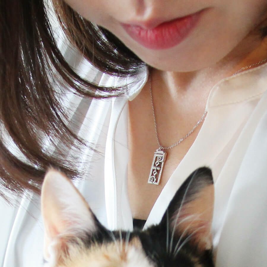 ドアのフチの上でくつろぐネコのネックレス