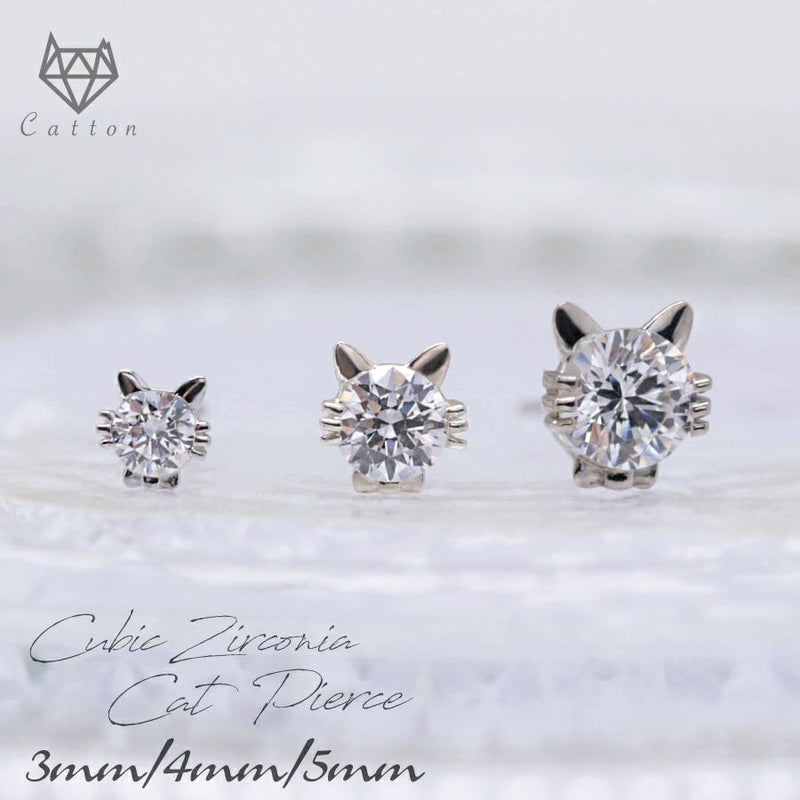地金のねこ耳、ひげ、リボンの繊細なデザインと、宝石一の輝きを放つダイヤモンドのコンビネーションは唯一無二のデザインです。