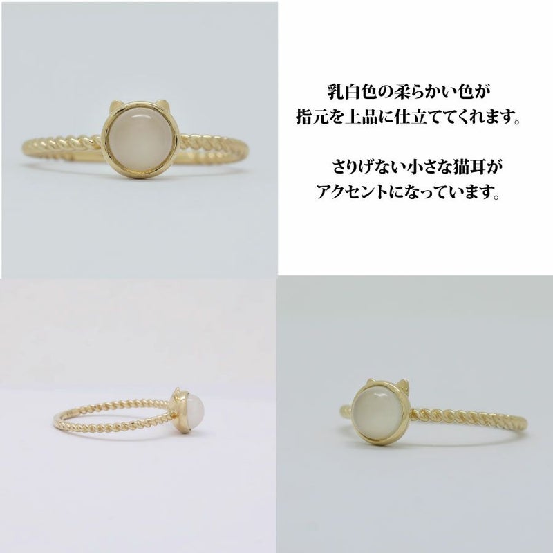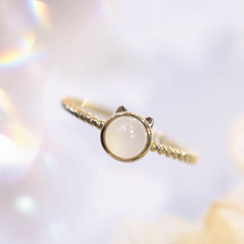 Cattonオリジナルのネコリングをレトロな雰囲気漂うアンティークデザインに落とし込みました。 さりげないネコ耳に目一杯のネコ愛をしのばせています。 リングのアーム部分は細めのツイストデザインに仕上げ、 クラシカルな雰囲気をより一層引き立たせました。 石は他にオパール、ターコイズもございます。 K18/K10素材はイエローゴールド・ピンクゴールド・ホワイトゴールドの 3種類の地金からお選び頂けます。